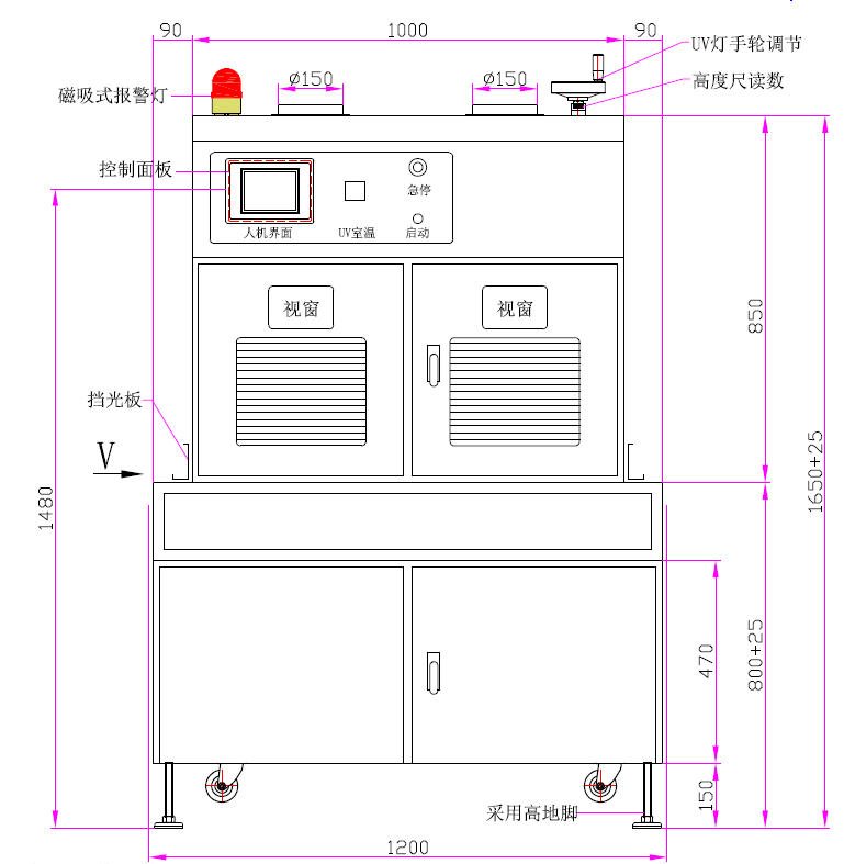 2、UV燈總長(zhǎng):660mm、弧長(zhǎng):550mm
