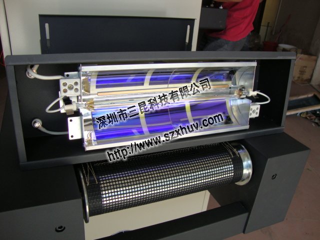 高壓汞燈光源配置,適合巷裝材料的絲網(wǎng)印刷,可依據(jù)需要開啟 - 吏或兩吏燈筐。